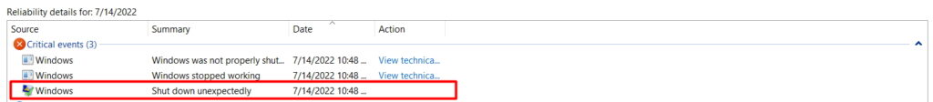 3.Κάντε κλικ στοΗμερομηνίαταιριάζοντας με την ημερομηνία σύγκρουσης που αναφέρεται στο γράφημα. Για παράδειγμα, εάν εμφανιστεί το σφάλμα BSOD7/14/2022. Κλικ στο7/14/2022που εμφανίζεται στον άξονα x του γραφήματος.
