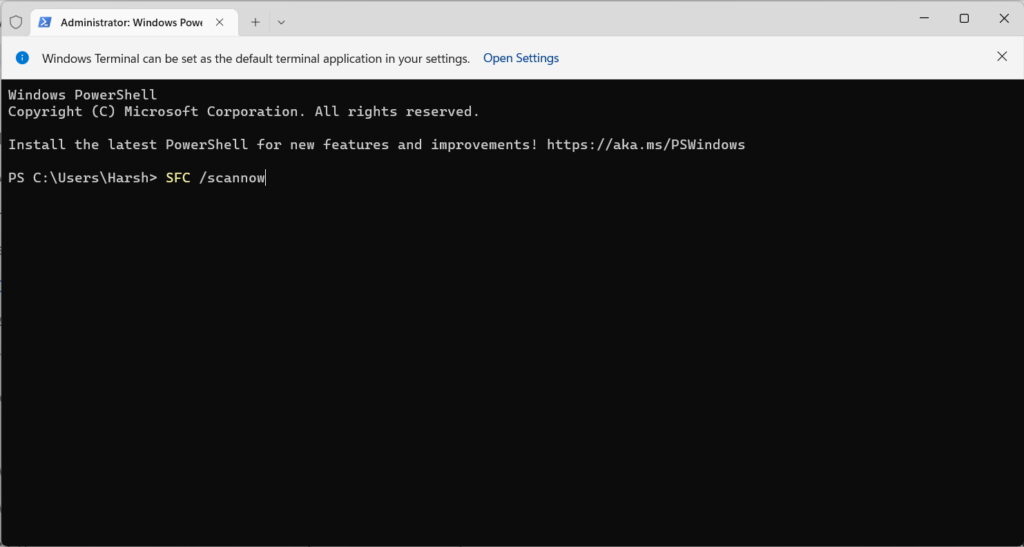 1.Ανοίξτε ξανά τοΕφαρμογή τερματικού σταθμούκαι πληκτρολογήστε:SFC /SCANNOW