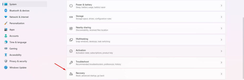 2.Κατευθυνθείτε προς τοΑνάκτησηΤμήμα από την αριστερή πλοήγηση.