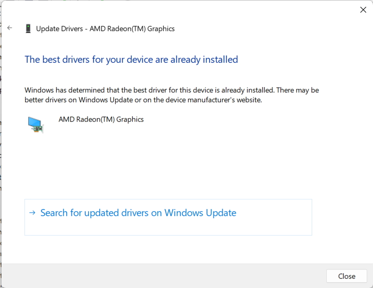8. Συνεχίστε Fμεταβάλλοντας τις οδηγίες στην οθόνη και κλείστε το παράθυρο όταν βλέπετε το μήνυμα«Οι καλύτεροι οδηγοί έχουν ήδη εγκατασταθεί».