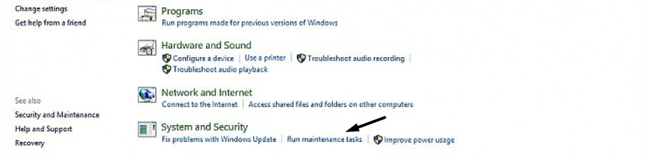 3.Κάντε κλικ στοΕκτέλεση εργασιών συντήρησηςεπιλογή κάτω από τοΣύστημα και ασφάλειατμήμα.