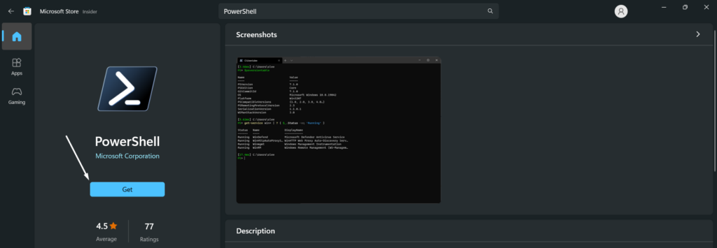 1.Ανοίγω τοΚατάστημα Microsoftστον υπολογιστή σας Windows 11 και αναζητήστε γιαPowerShellχρησιμοποιώντας την αναζήτηση στην κορυφή.