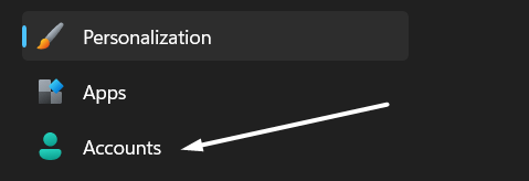 1.Ανοίγω τοΕφαρμογή ρυθμίσεωνχρησιμοποιώντας τη συντόμευση πληκτρολογίου και μεταβείτε στοΛογαριασμοίΤμήμα από τα αριστερά.
