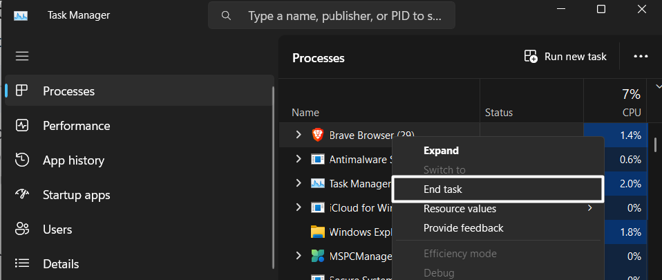5.Τελικά, η Force κλείνει όλα τα προγράμματα και τις διαδικασίες που εκτελούνται στην εφαρμογή Task Manager.