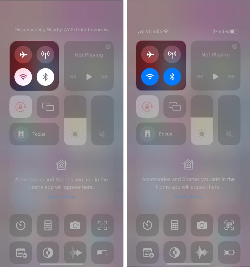 Επομένως, πριν προχωρήσετε με τη διαδικασία, καλέστε τοΚέντρο ελέγχουκαι πατήστε στοBluetoothκαιΕικονίδια Wi-Fiγια να ενεργοποιήσετε αυτές τις υπηρεσίες.