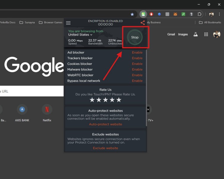 Τώρα, καθώς η διαδικασία απενεργοποίησης των διακομιστών VPN και Proxy διαφέρει ανάλογα με τους προγραμματιστές, δεν έχουμε παράσχει μια μέθοδο βήμα προς βήμα για αυτό. Ωστόσο, εάν χρησιμοποιείτε μια επέκταση VPN στο Google Chrome, μπορείτε απλά να κάνετε κλικ σε αυτό από την ενότητα Punded Extensions στο πρόγραμμα περιήγησης και να το απενεργοποιήσετε από εκεί όπως φαίνεται στο παρακάτω στιγμιότυπο οθόνης.