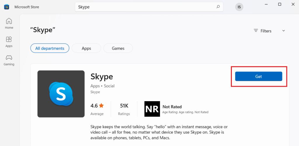 Βήμα 2:Πληκτρολογήστε το όνομα της συγκεκριμένης εφαρμογής στη γραμμή αναζήτησης στο επάνω μέρος της σελίδας (στην περίπτωσή μας είναι Skype).