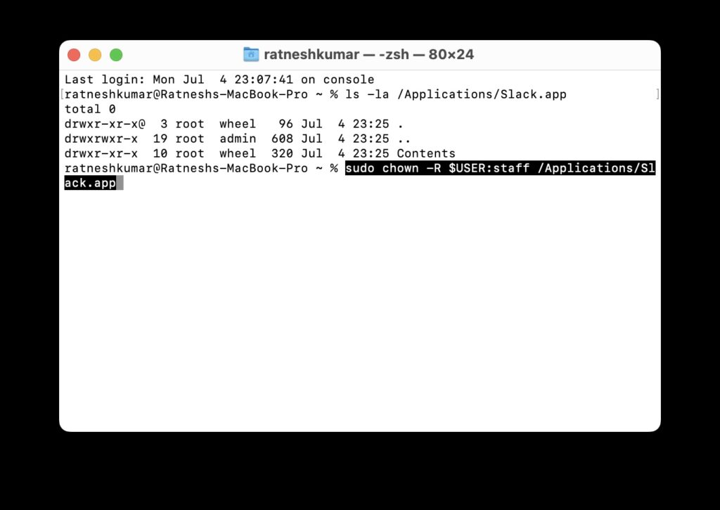 Μπορείτε απλά να εγκαταστήσετε το Slack στο Mac σας για να επιλύσετε το πρόβλημα. Μπορείτε επίσης να αλλάξετε την ιδιοκτησία εφαρμογών Slack από root σε ιδιοκτήτη χρησιμοποιώντας το τερματικό.