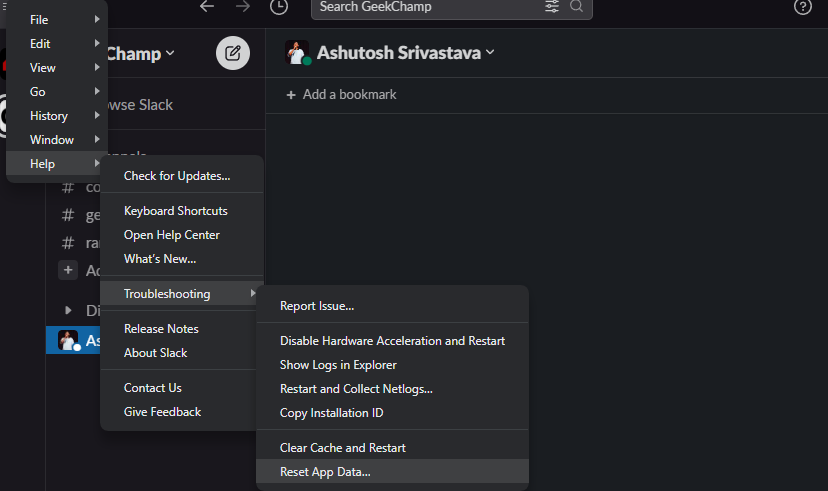 Εάν οι ειδοποιήσεις σας είναι ενεργοποιημένες, τα κανάλια και το DMS δεν είναι σε σίγαση, αλλά ακόμα, δεν παίρνετε pop-ups από το Slack, το θέμα μπορεί να είναι με την εφαρμογή σας. Για να το διορθώσουμε, προσπαθούμε πρώτα τη μέθοδο εκκαθάρισης cache. Δείτε πώς μπορείτε να καθαρίσετε την κρυφή μνήμη του Slack στον υπολογιστή σας: