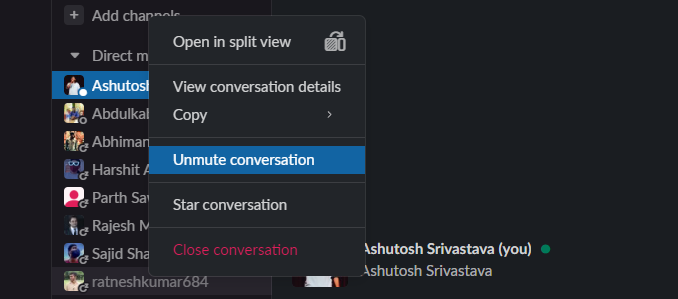 Εάν αντιμετωπίζετε το ζήτημα ειδοποίησης με ορισμένα συγκεκριμένα κανάλια ή DMS, τότε υπάρχει πιθανότητα να τα έχετε σβήνει τυχαία. Σε χαλάρωση, αν δείτε το όνομα οποιουδήποτε ατόμου/καναλιού σε γκρι χρώμα κειμένου, αυτό σημαίνει ότι είναι σε σίγαση.