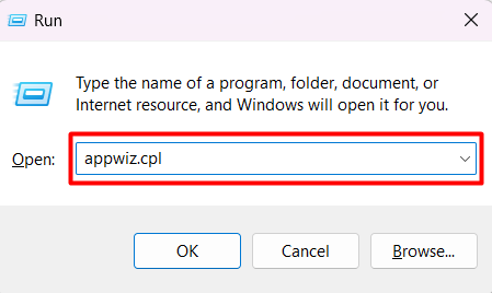 2.Μετά από αυτό, πληκτρολογήστεappwiz.cplσεΤρέξιμοκαι πατήστεΕισάγω.