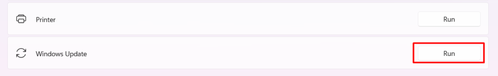 4.Κάντε κλικ στοΤρέξιμοκουμπί δίπλα στοΕνημέρωση των Windowsδιορθωτής του κακού.