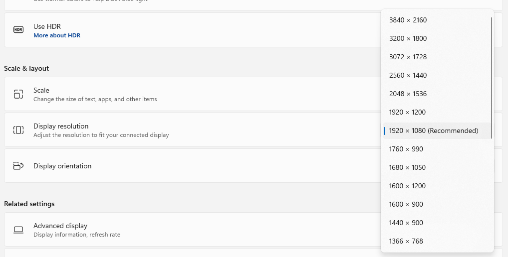 Δείτε πώς μπορείτε να αλλάξετε την ανάλυση των συνδεδεμένων οθονών στα Windows 11:
