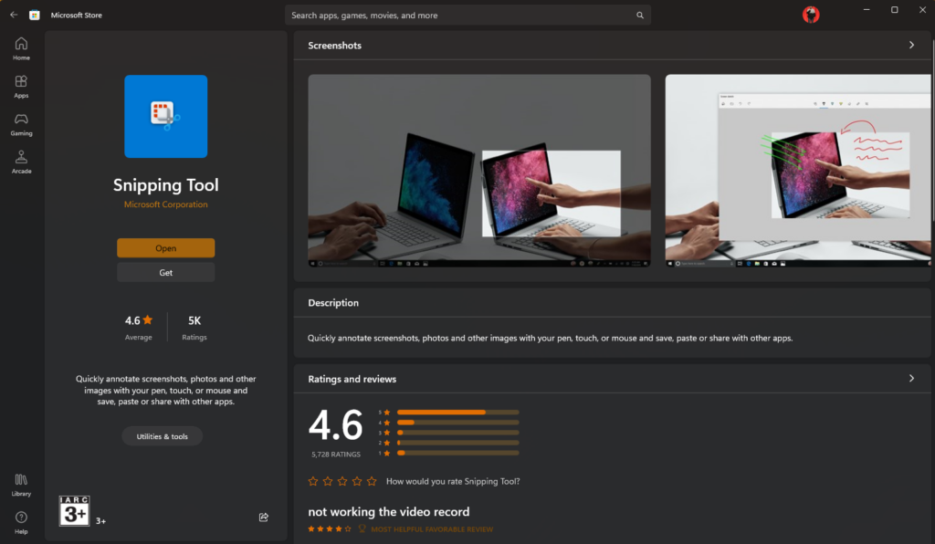 Επανατοποθετήστε την εφαρμογή εργαλείου Snipping