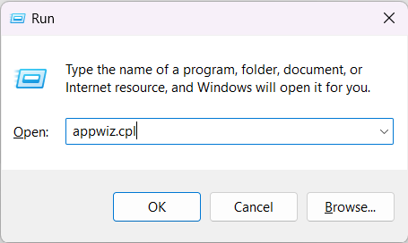 2.Τύποςappwiz.cplκαι πατήστε τοΕισαγάγετε το κλειδί.