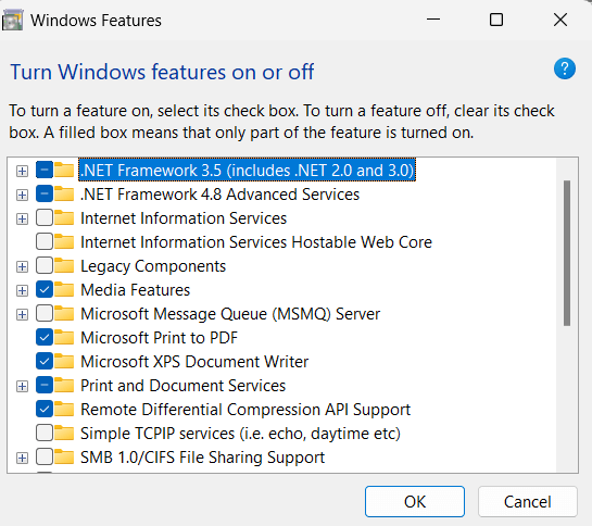 Τα Windows θα ξεκινήσουν την εγκατάσταση του πλαισίου .NET χρησιμοποιώντας τις λειτουργίες των Windows. Αυτή η διαδικασία μπορεί να διαρκέσει λίγο χρόνο και ενδέχεται να σας ζητηθεί να επανεκκινήσετε τον υπολογιστή σας για να ολοκληρώσετε την εγκατάσταση.