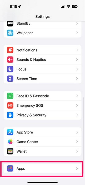 2.Μετακινηθείτε προς τα κάτω και πατήστε τοΕπιλογή εφαρμογών.