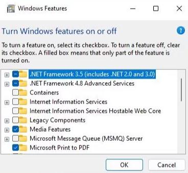 Βήμα 6:Στο ίδιο κουτί αναζητήστε το .NET Framework 3.5 και ελέγξτε το πλαίσιο δίπλα του.