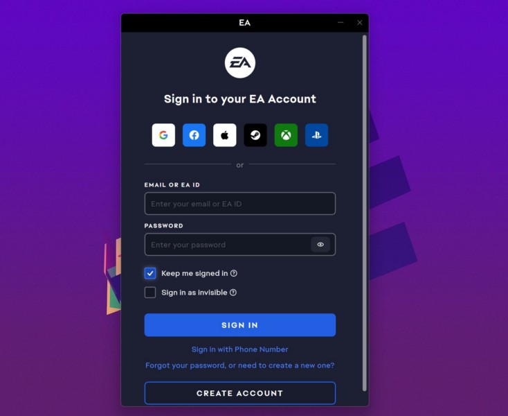 12.Μόλις εγκαταστήσει η εφαρμογή, χρησιμοποιήστε τα διαπιστευτήριά σας για να συνδεθείτε στο λογαριασμό σας EA.