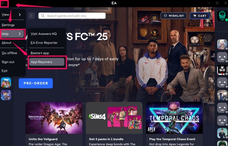 8. Εκτελέστε την ανάκτηση εφαρμογών στην εφαρμογή EA στον υπολογιστή Windows 11 ή στο φορητό υπολογιστή σας