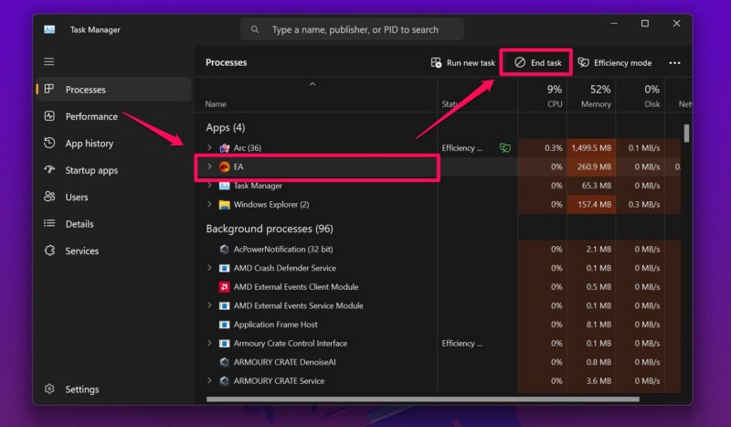 Μπορείτε να ακολουθήσετε τα βήματα ακριβώς παρακάτω για να κλείσετε την εφαρμογή EA στον υπολογιστή σας Windows 11 ή το φορητό υπολογιστή σας και να το επαναφέρετε: