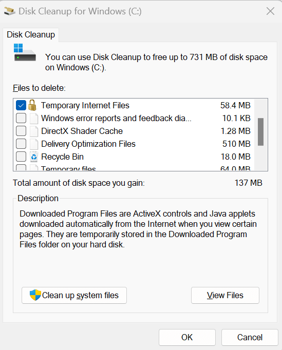 Ο φάκελος Temp περιέχει κατεστραμμένα δεδομένα, τα οποία είναι μια άλλη γνωστή αιτία σφάλματος 1152. Για να επιλύσετε αυτό το ζήτημα, μπορείτε να καθαρίσετε τα δεδομένα που είναι αποθηκευμένα στο φάκελο. . Το προεπιλεγμένο πρόγραμμα καθαρισμού για τα Windows Systems ονομάζεται καθαρισμός δίσκου. Με αυτήν την εφαρμογή, μπορείτε να διαγράψετε πολλά περιττά αρχεία εκτός από τα προσωρινά. Αυτός είναι ο τρόπος με τον οποίο ο καθαρισμός του δίσκου των Windows 11 διαγράφει προσωρινά αρχεία.