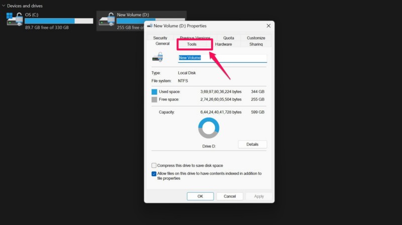 Αυτή η μέθοδος θα πρέπει να είναι σε θέση να σας βοηθήσει να ανιχνεύσετε αυτά τα σφάλματα μέσα στους σκληρούς δίσκους σας και να λάβετε τις απαραίτητες ενέργειες για την επίλυσή τους. Έτσι, ακολουθήστε τα βήματα παρακάτω για να ελέγξετε τους σκληρούς δίσκους σας χρησιμοποιώντας το βοηθητικό πρόγραμμα Windows 11 Chkds στο υπολογιστή ή το φορητό υπολογιστή σας μέσω του Explorer File: