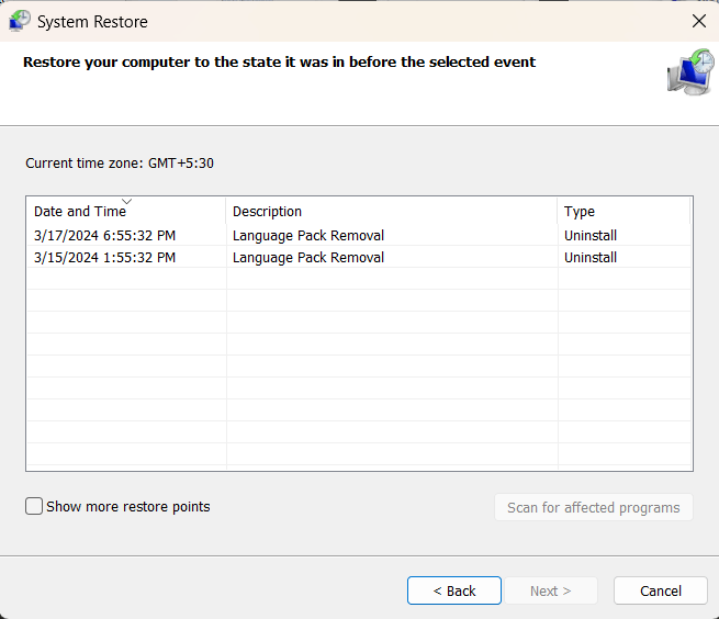 Διορθώστε 3: Εκτελέστε μια επαναφορά συστήματος