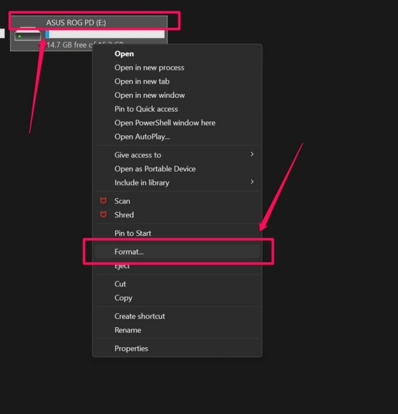 Τώρα, εάν δεν μπορείτε να καταργήσετε το αρχείο απειλής ή αν καμία από τις παραπάνω μέθοδοι δεν λειτουργεί για την επίλυση του "αίτημα που απέτυχε λόγω ενός θανατηφόρου σφάλματος υλικού συσκευής" για την εξωτερική σας μονάδα, το τελευταίο πράγμα που μπορείτε να δοκιμάσετε είναι να το μορφοποιήσετε. Η μορφοποίηση του εξωτερικού σας δίσκου θα διαγράψει όλα τα δεδομένα που περιέχει και θα δώσει στη μονάδα καθαρή πλάκα. Ωστόσο, υπάρχει μεγάλη πιθανότητα ότι μια μορφή του εξωτερικού δίσκου θα σας βοηθήσει να απαλλαγείτε από το "το αίτημα που απέτυχε λόγω ενός θανατηφόρου σφάλματος υλικού συσκευής" για αυτό στο Windows 11 PC ή το φορητό υπολογιστή σας.
