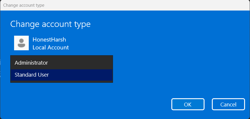 8.Θέτω τοΤύπος λογαριασμούαναπτυσσόμενο από τοΔιαχειριστήςεπιλογή και κάντε κλικΕΝΤΑΞΕΙΓια να εφαρμόσετε τις αλλαγές.