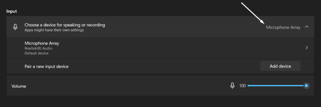 7. Ρυθμίστε το τρέχον μικρόφωνο ως προεπιλεγμένη συσκευή για αναγνώριση ομιλίας