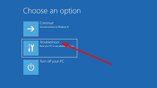 Βήμα 4:ΟΠροηγμένη εκκίνησηΗ σελίδα θα εμφανιστεί τώρα όταν η επανεκκίνηση των Windows. ΕπιλέγωΑντιμετώπιση προβλημάτωναπό το μενού.
