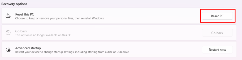3.Κλικ στοΕπαναφορά PCκάτω από τοΕπιλογές ανάκτησηςτμήμα.
