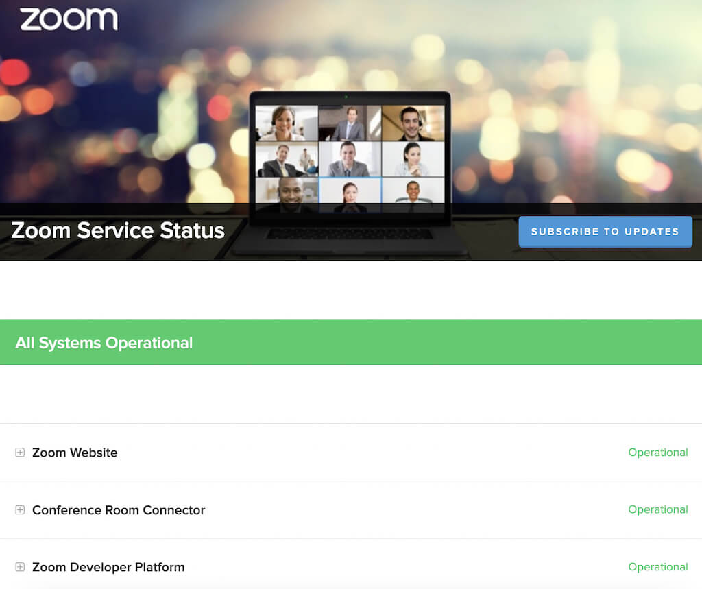 Πριν από την αντιμετώπιση προβλημάτων του λειτουργικού σας συστήματος και της εφαρμογής ζουμ, πρέπει να αποκλείσετε ένα ακόμη πράγμα. Εάν το ζουμ συνεχίζει να συντρίβει, να παγώνει ή να υστερεί, ελέγξτε την κατάσταση της υπηρεσίας του Zoom πρώτα. Ολόκληρο το δίκτυο ζουμ μπορεί να είναι κάτω και δεν είστε οι μόνοι που αντιμετωπίζουν προβλήματα.
