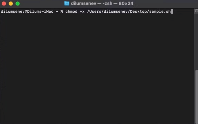 - Πληκτρολογήστε CHMOD +X, αντικαθιστώντας με την πραγματική διαδρομή στο σενάριο κελύφους σας. Για παράδειγμα, εάν το σενάριό σας ονομάζεται "my_script.sh" και είναι στο φάκελο εγγράφων, θα πληκτρολογείτε: chmod +x documents/my_script.sh.