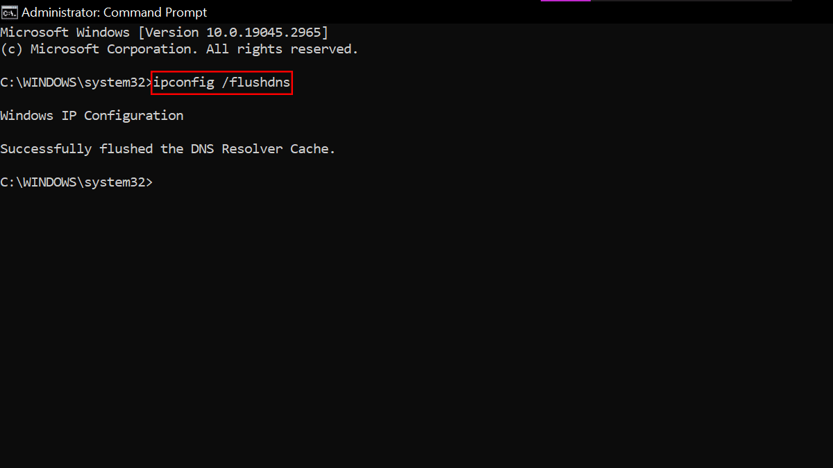 - Πληκτρολογήστε την ακόλουθη εντολή για να ξεπλύνετε τοCache DNS> πατήστεΕισάγωστο πληκτρολόγιο.