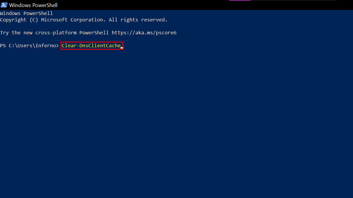 - Όταν ολοκληρωθεί, η εντολή PowerShell θα καθαρίσει και θα επαναφέρει τα αρχεία DNS που αποθηκεύονται στη συσκευή.