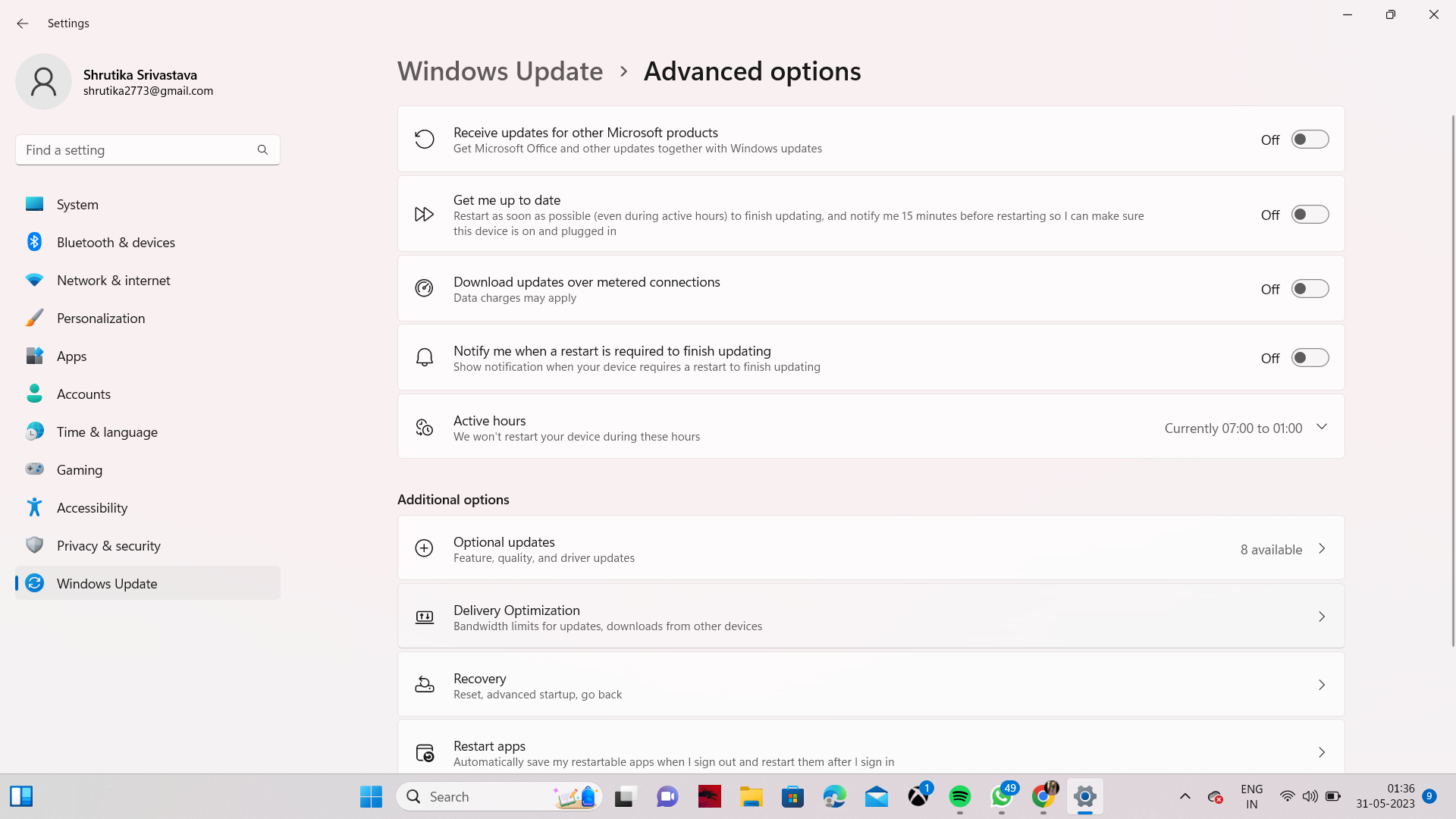 Στην ενότητα Προχωρημένες επιλογές, θα δείτε έναν διακόπτη εναλλαγής με την ένδειξη "Λήψη ενημερώσεων για άλλα προϊόντα της Microsoft όταν ενημερώνετε τα Windows". Αυτός ο διακόπτης εναλλαγής ελέγχει τη δυνατότητα "Λήψη τελευταίων ενημερώσεων μόλις διαθέσιμη". Για να ενεργοποιήσετε τη λειτουργία και να λάβετε ενημερώσεις για άλλα προϊόντα της Microsoft, εναλλαγή του διακόπτη στη θέση "ON". Αντίθετα, εάν προτιμάτε να απενεργοποιήσετε τη λειτουργία και να λάβετε μόνο τις τελευταίες πληροφορίες ειδικά για τα Windows, εναλλαγή του διακόπτη στη θέση "off".