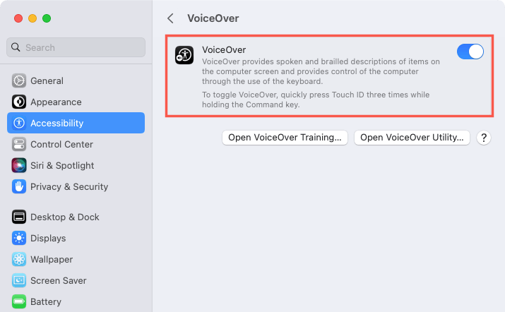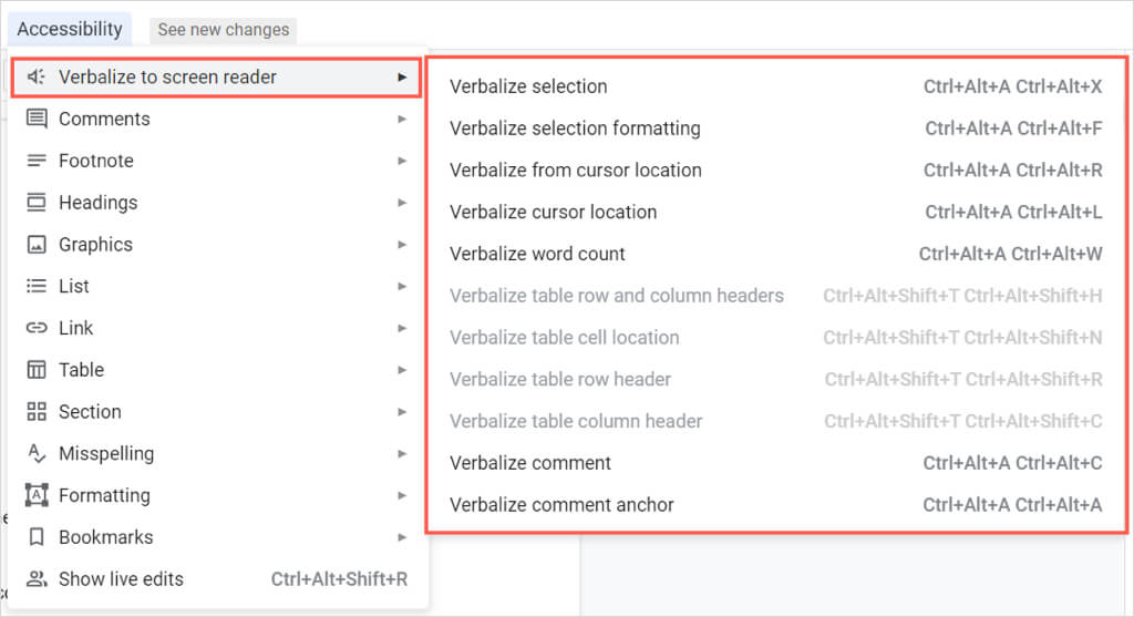 Εάν χρησιμοποιείτε macOS, μπορείτε να επωφεληθείτε από τη δυνατότητα προσβασιμότητας της Apple, Voiceover. Ακολουθήστε τα βήματα στην αρχή αυτού του τρόπου ενεργοποίησης της λειτουργίας προσβασιμότητας των εγγράφων Google. Στη συνέχεια, ενεργοποιήστεΦωνήμε τα παρακάτω βήματα.