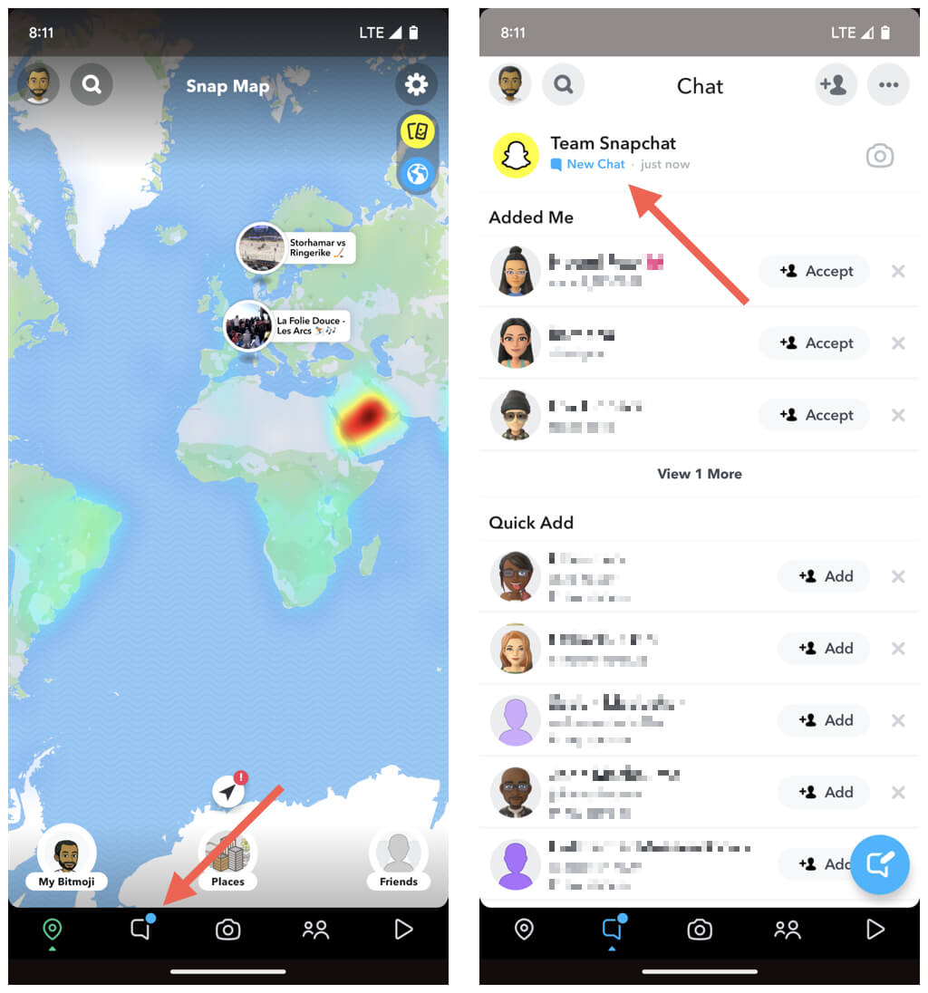 - Περιμένετε έως ότου η εφαρμογή Snapchat προωθεί τις συνομιλίες σας και βλέπετε τοΝέα συνομιλίαΗ ετικέτα εμφανίζεται κάτω από τις συνομιλίες που θέλετε να δείτε.