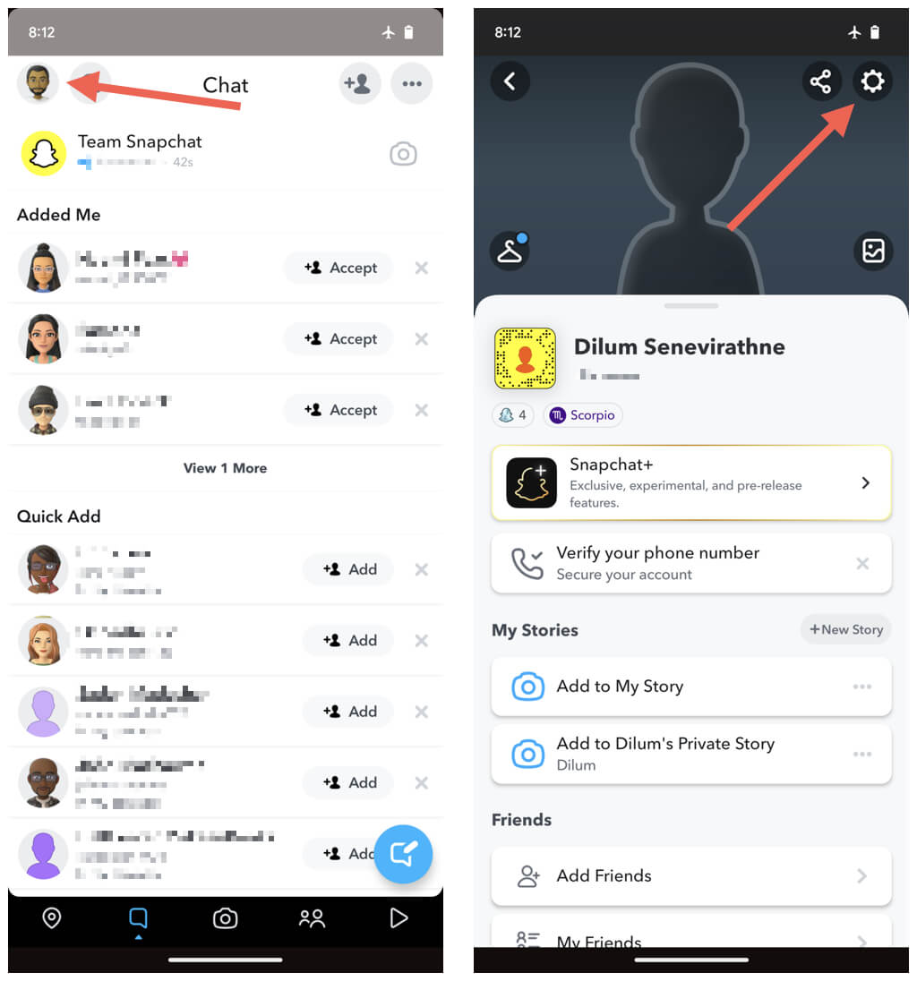 - Επιστρέψτε στο παράθυρο συνομιλίας και πατήστε το εικονίδιο προφίλ Snapchat στο επάνω αριστερό μέρος της οθόνης.