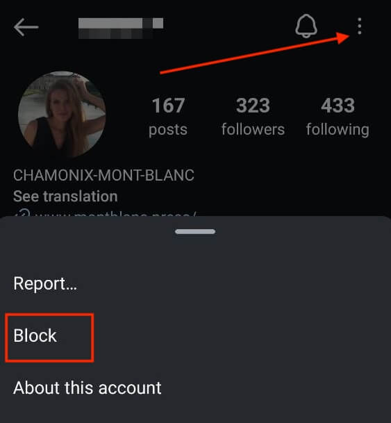 - Στη σελίδα προφίλ τους, πατήστε τοεικονίδιο τριών κουκίδωνστην επάνω δεξιά γωνία της οθόνης.