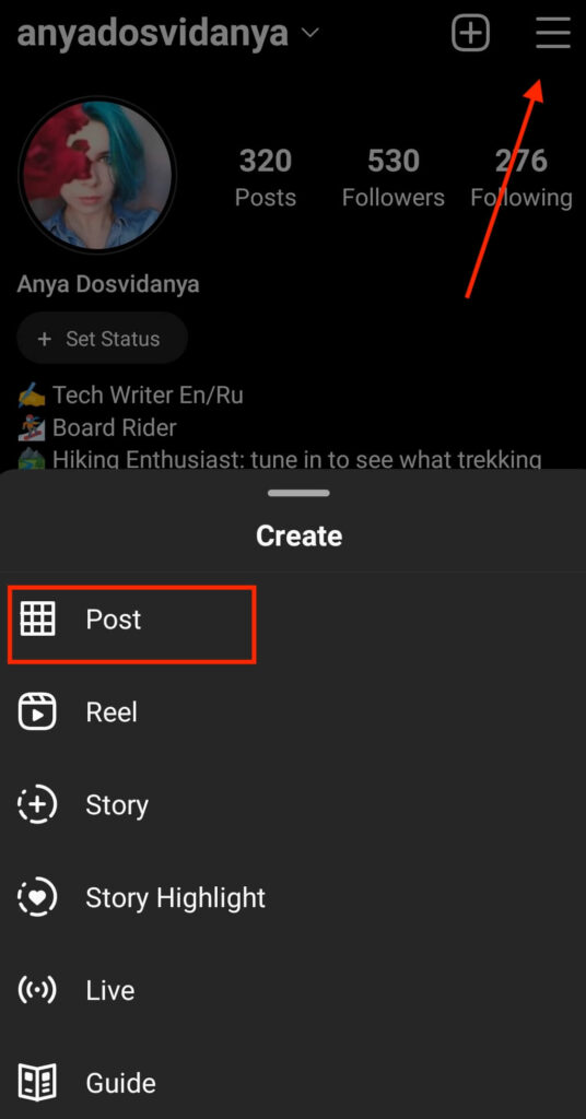 - Ανοίξτε τον λογαριασμό σας Instagram και δημιουργήστε ένα νέοΘέση.