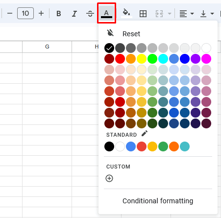 - Επιλέξτε τοΧρώμα κειμένουΕικονίδιο από την κύρια γραμμή εργαλείων και επιλέξτε το επιθυμητό χρώμα.