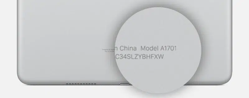 Θα παρατηρήσετε τον αριθμό του μοντέλου στο τμήμα πίσω βάσης του iPad σας. Είναι ένας άλφα-Νουμιερικός κώδικας, ξεκινώντας με«Α» ακολουθούμενο από ένα σύνολο αριθμών.Αυτός ο αριθμός δεν θα σας πει μόνο το μοντέλο iPad σας. Θα σας πει επίσης εάν το μοντέλο σας είναι Wi-Fi ή Wi-Fi + Cellular.