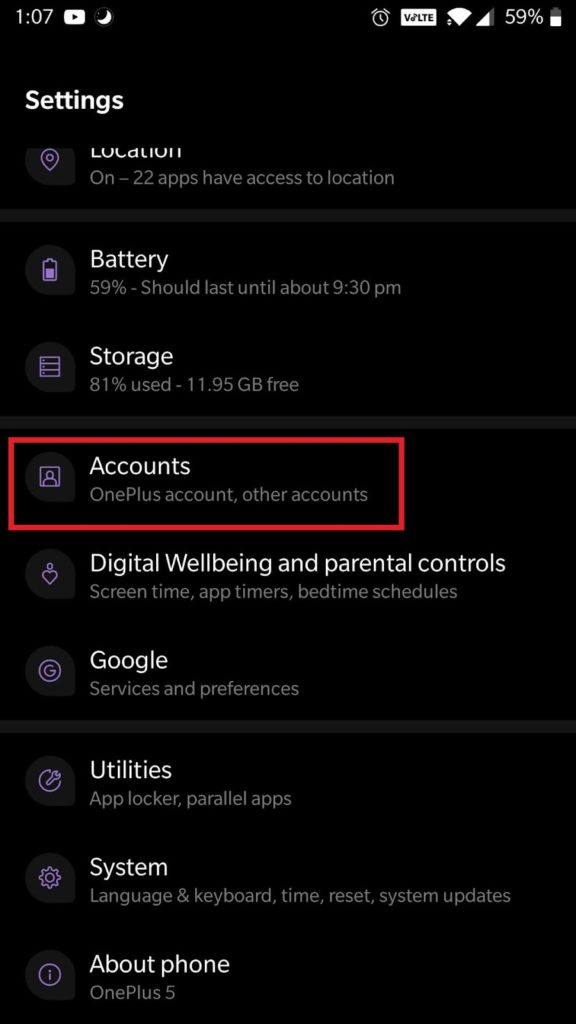Για να απενεργοποιήσετε το αυτόματο συγχρονισμό, μεταβείτε στη συσκευή σαςΡυθμίσεις> ΕπιλέξτεΛογαριασμοί.