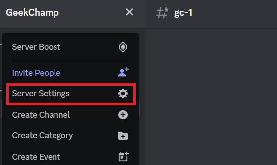 1.Κάντε κλικ στο αναπτυσσόμενο μενού δίπλα στο όνομα του διακομιστή στο επάνω αριστερά και ανοίξτεΡυθμίσεις διακομιστή.