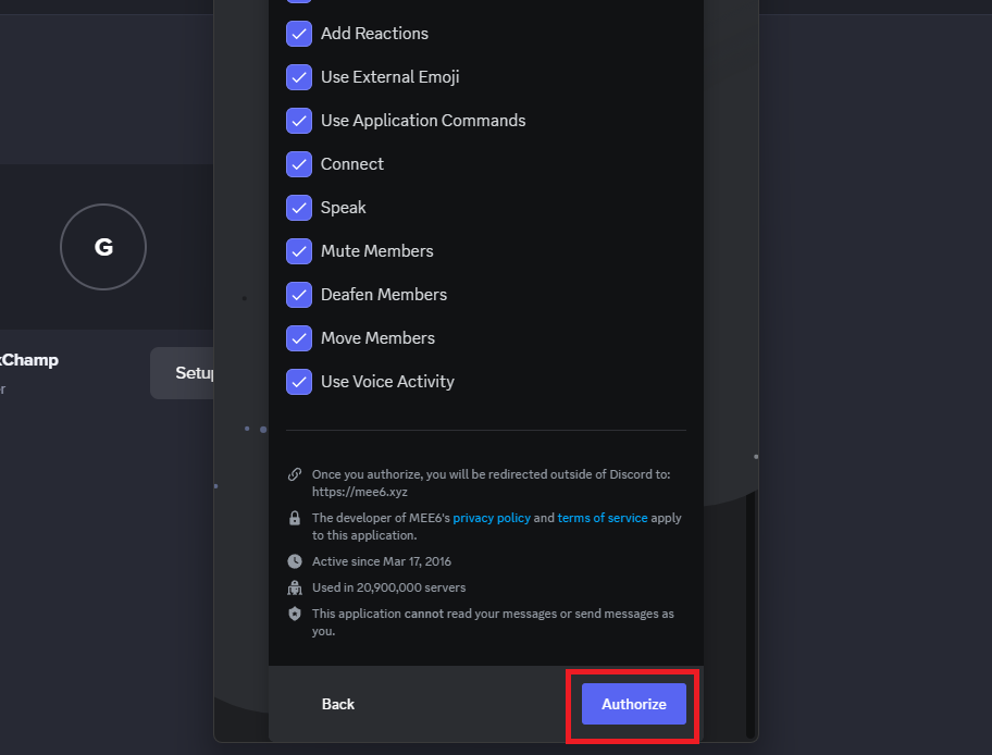 5.Εξουσιοδοτήστε το bot για το διακομιστή.