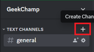 1.Κάντε κλικ στο«+»Εικονίδιο δίπλα στο κανάλι στο οποίο θέλετε να δημιουργήσετε ένα νέο κανάλι κειμένου ή φωνής.