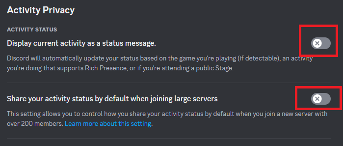 2.Ενεργοποιήστε την εναλλαγή γιαΕμφάνιση της τρέχουσας δραστηριότητας ως μηνύματος κατάστασης.